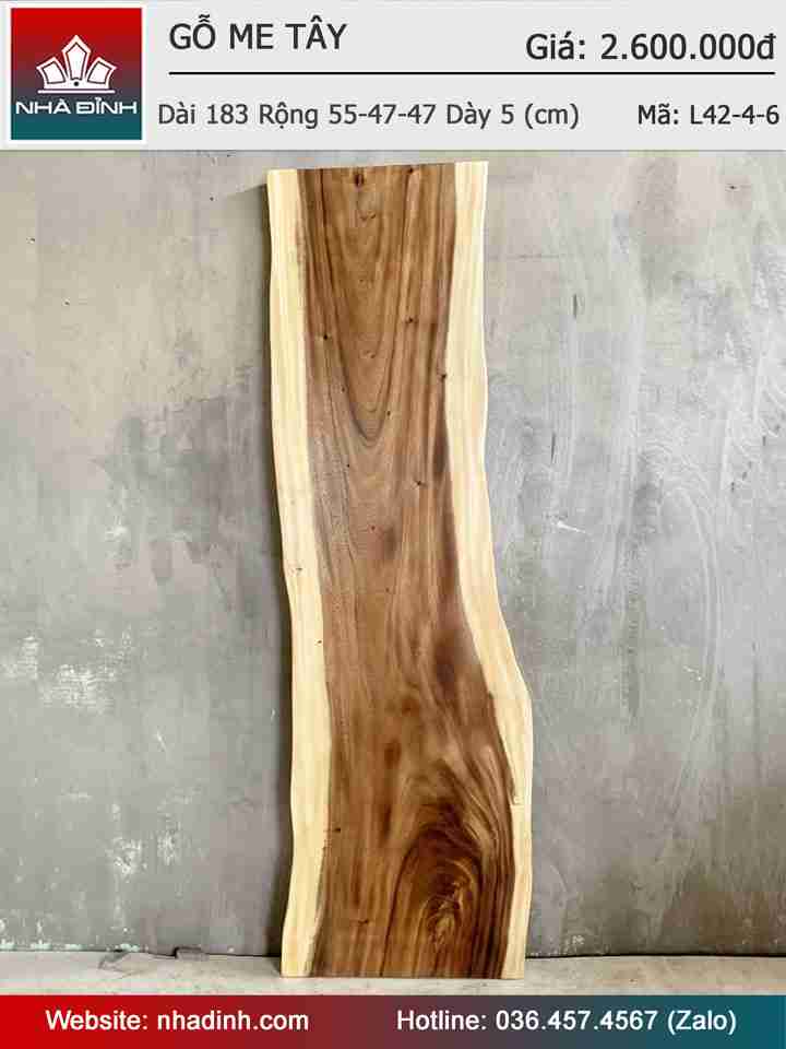 Mặt Bàn Gỗ Me Tây Nguyên Khối Dài 183 Rộng 55-47-47 Dày 5 (cm)