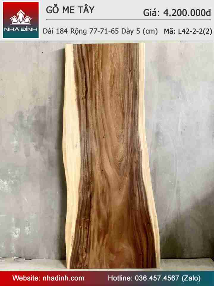 Mặt Bàn Gỗ Me Tây Nguyên Khối Dài 184 Rộng 77-71-65 Dày 5 (cm)
