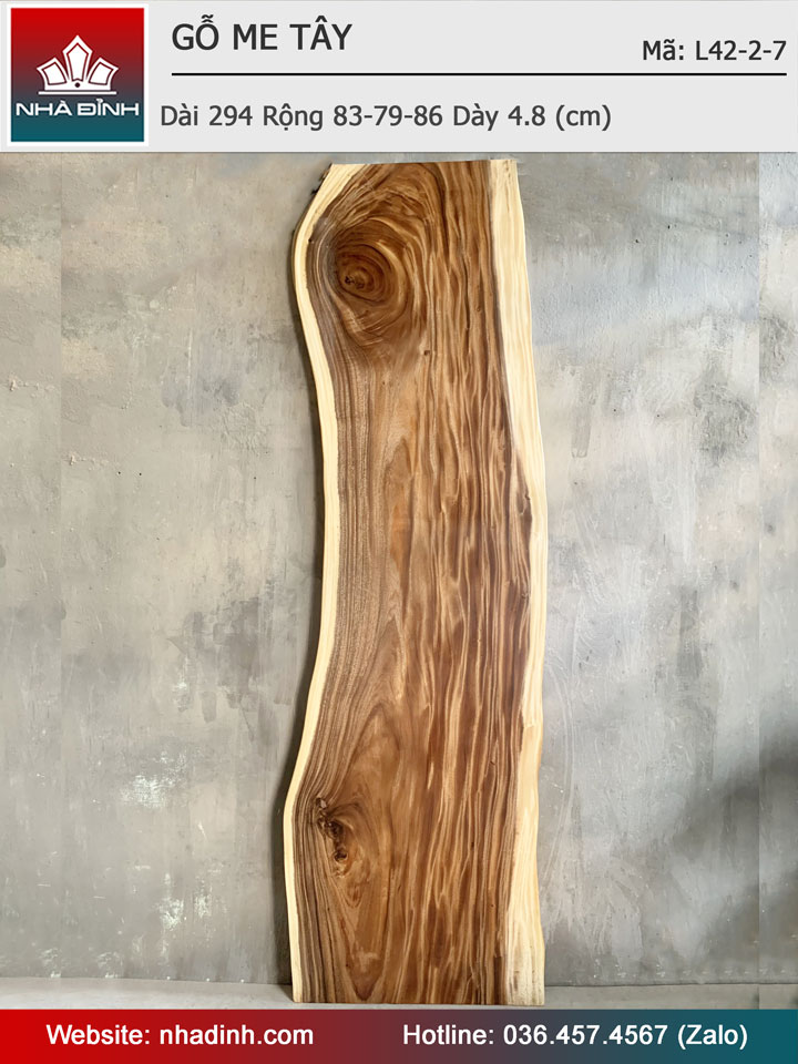 Mặt Bàn Gỗ Me Tây Nguyên Khối Dài 294 Rộng 83-79-86 Dày 4.8 (cm)