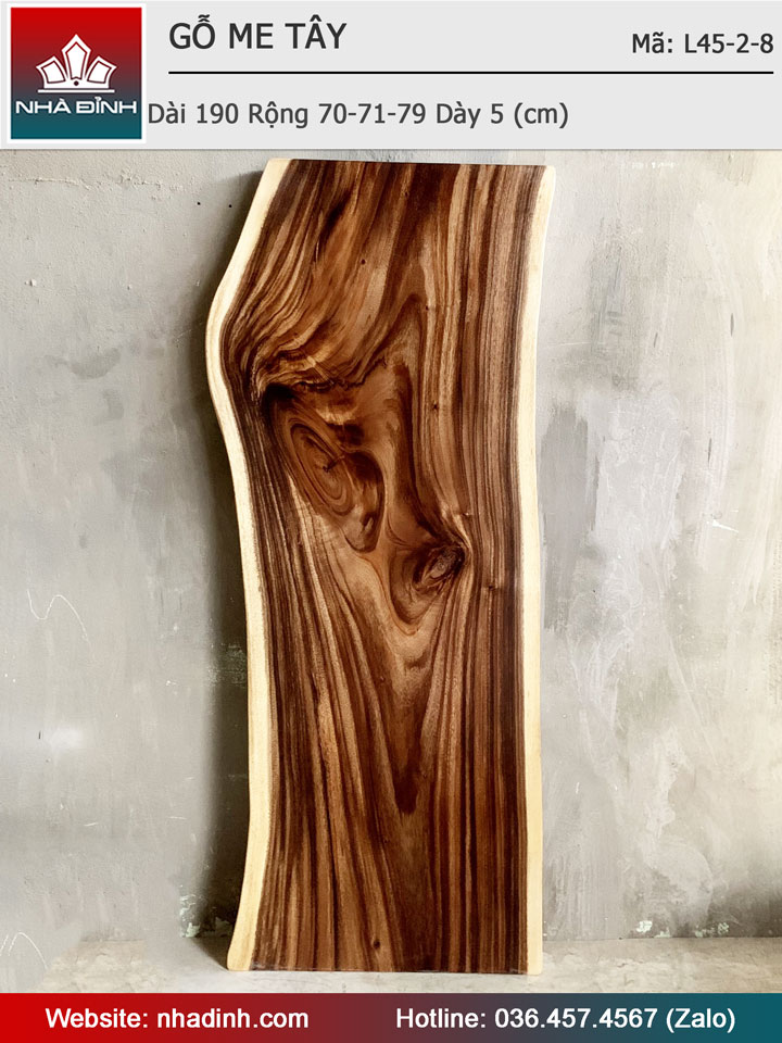 Mặt Bàn Gỗ Me Tây Nguyên Khối Dài 190 Rộng 70-71-79 Dày 5 (cm)