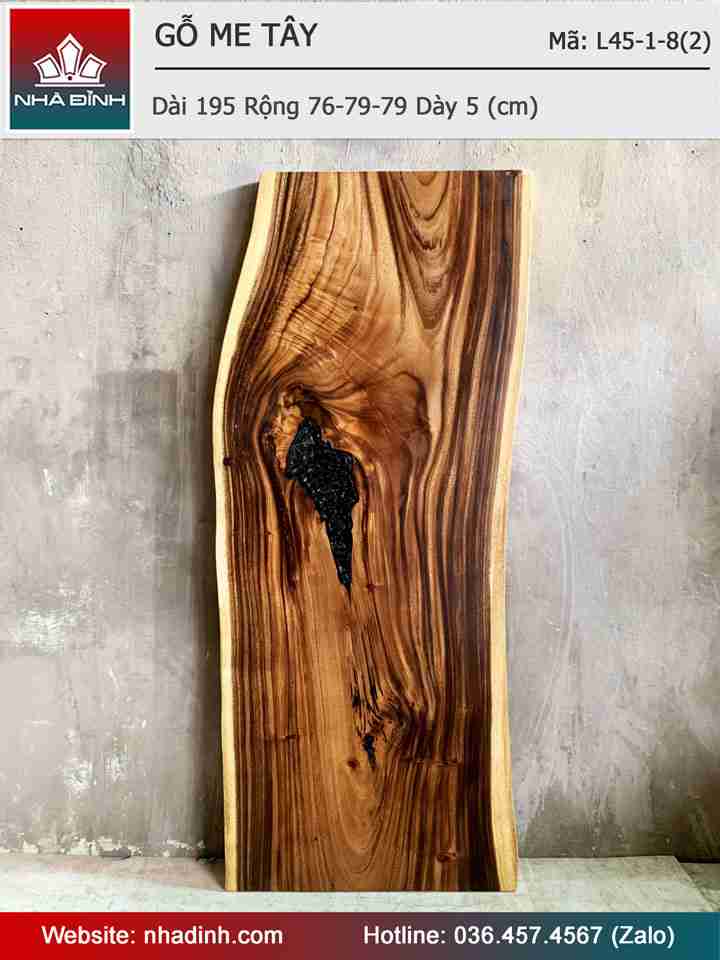 Mặt Bàn Gỗ Me Tây Nguyên Khối Dài 195 Rộng 76-79-79 Dày 5 (cm)