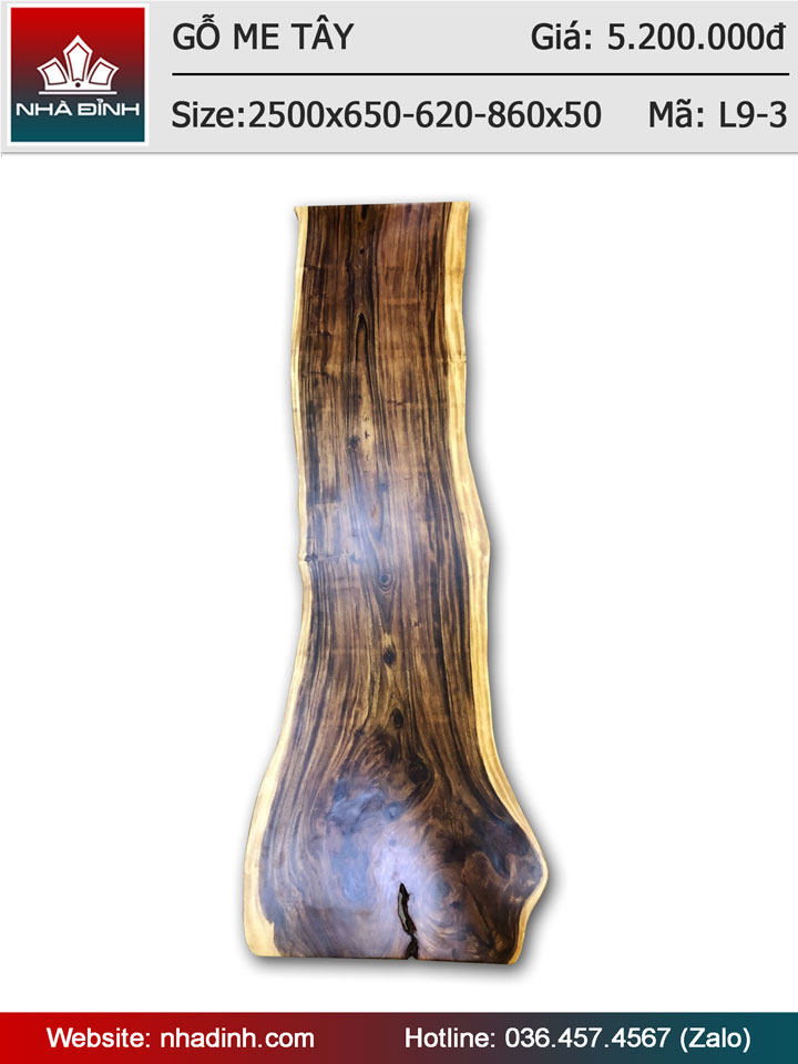 Mặt bàn gỗ Me Tây nguyên khối dài 2m5 rộng 65-62-86 dày 5 (cm)