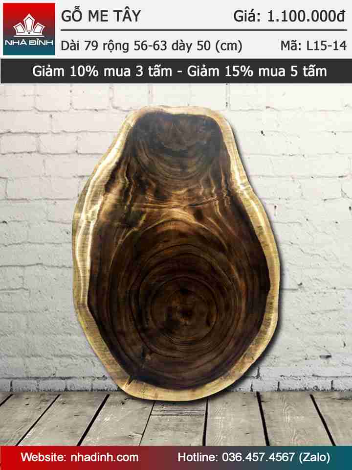 Mặt bàn gỗ Me Tây nguyên khối dài 790 rộng 560-630 dày 50 (mm)