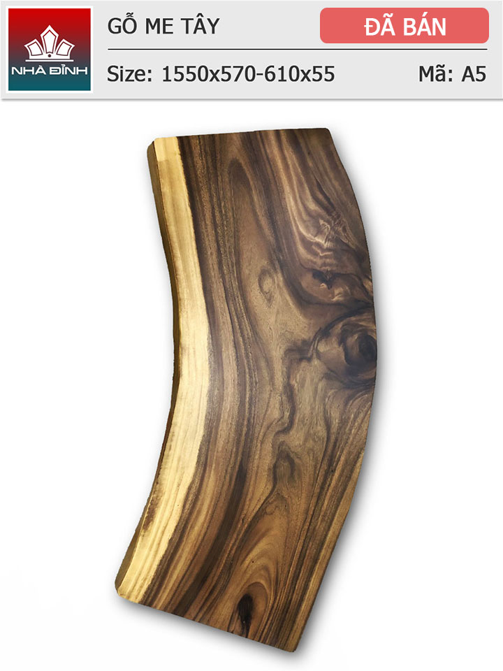 Mặt bàn gỗ Me Tây nguyên khối dài 1m55 rộng 57 - 61 dày 5.5 (cm)