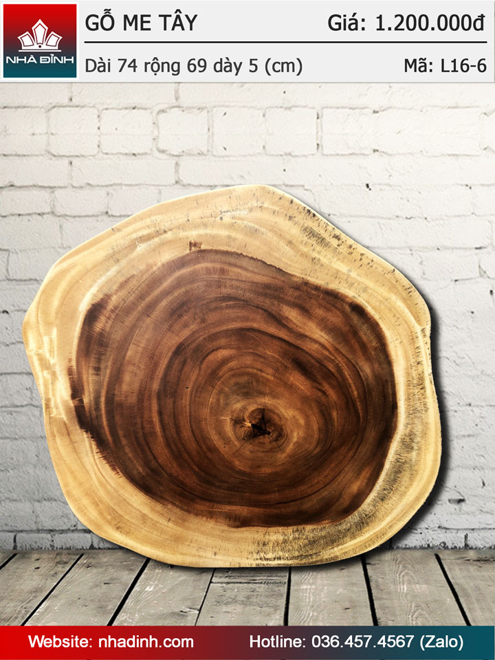 Mặt bàn gỗ Me Tây nguyên khối dài 740 rộng 690 dày 50 (mm)