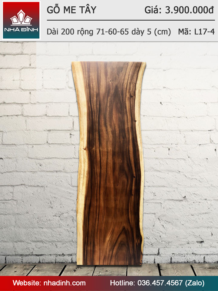 Mặt bàn gỗ Me Tây nguyên khối dài 200 rộng 71-60-65 dày 5 (cm)