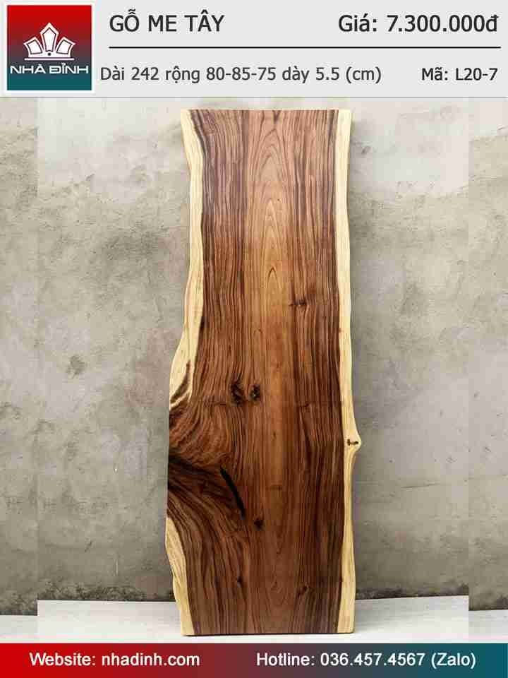 Mặt Bàn Gỗ Me Tây Nguyên Khối Dài 242 Rộng 80-85-75 Dày 5.5 (cm)