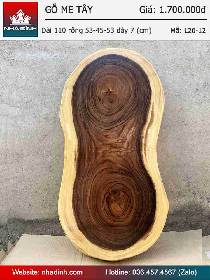 Mặt Bàn Gỗ Me Tây Nguyên Khối Dài 110 Rộng 53-45-53 Dày 7 (cm)