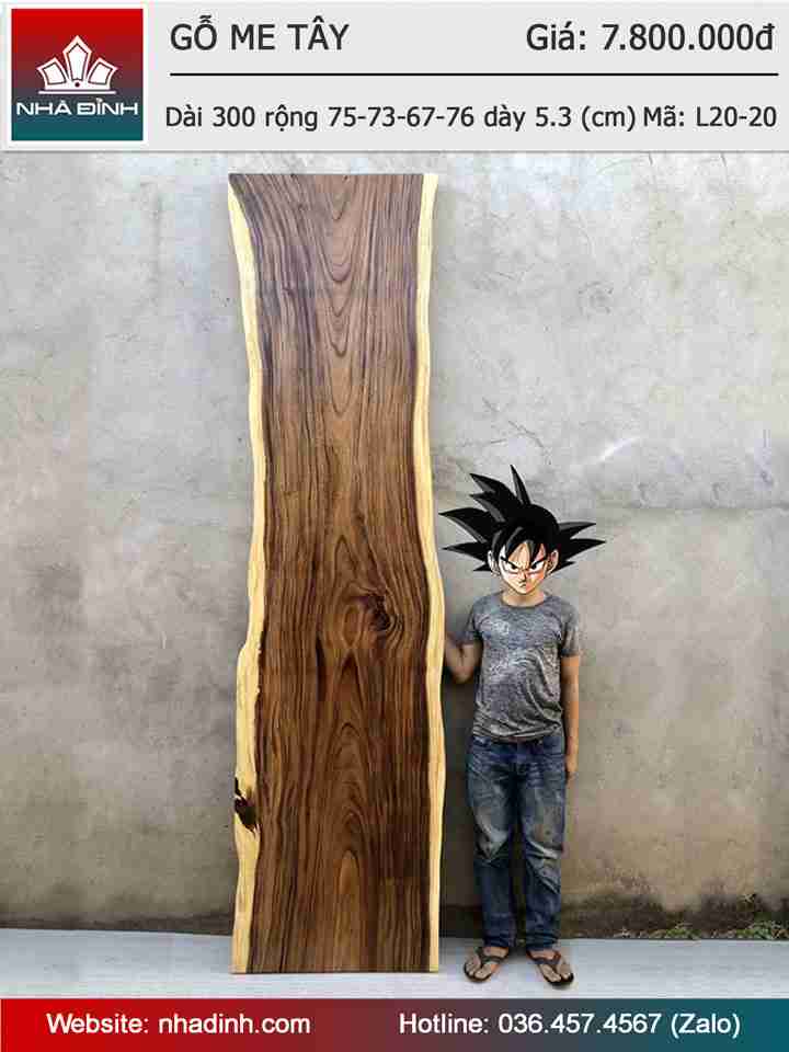 Mặt Bàn Gỗ Me Tây Nguyên Khối Dài 300 Rộng 75-73-67-76 Dày 5.3 (cm)