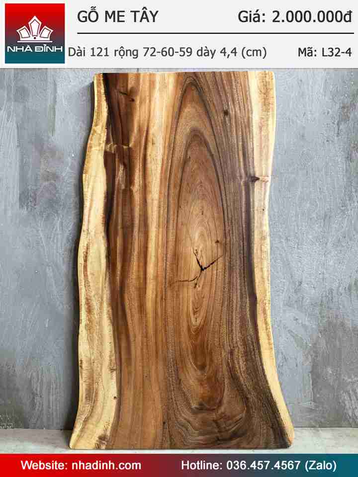 Mặt Bàn Gỗ Me Tây Nguyên Khối Dài 121 Rộng 72-60-59 Dày 4,4 (cm)