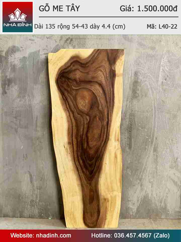 Mặt Bàn Gỗ Me Tây Nguyên Khối Dài 135 Rộng 54-43 Dày 4,4 (cm)