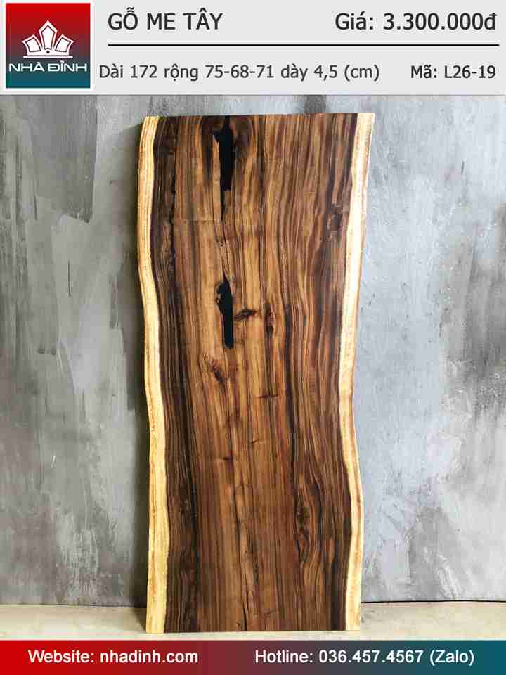 Mặt Bàn Gỗ Me Tây Nguyên Khối Dài 172 Rộng 75-68-71 Dày 4,5 (cm)