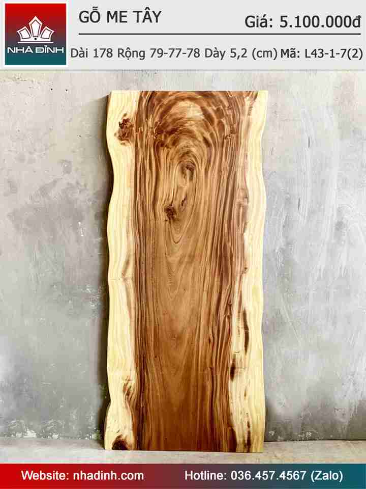 Mặt Bàn Gỗ Me Tây Nguyên Khối Dài 178 Rộng 79-77-78 Dày 5,2 (cm)