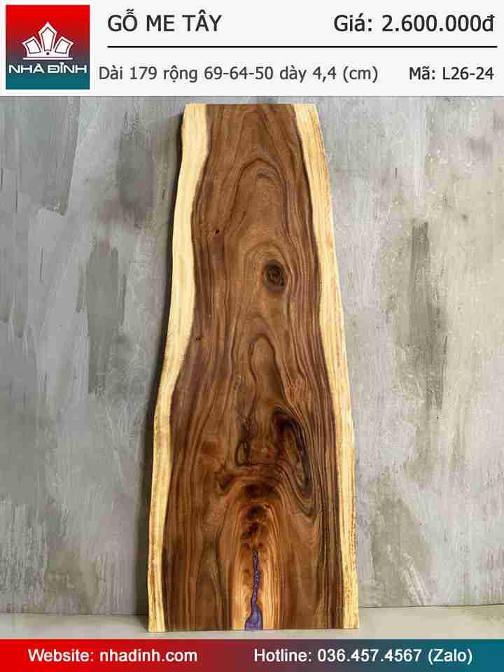 Mặt Bàn Gỗ Me Tây Nguyên Khối Dài 179 Rộng 69-64-50 Dày 4,4 (cm)