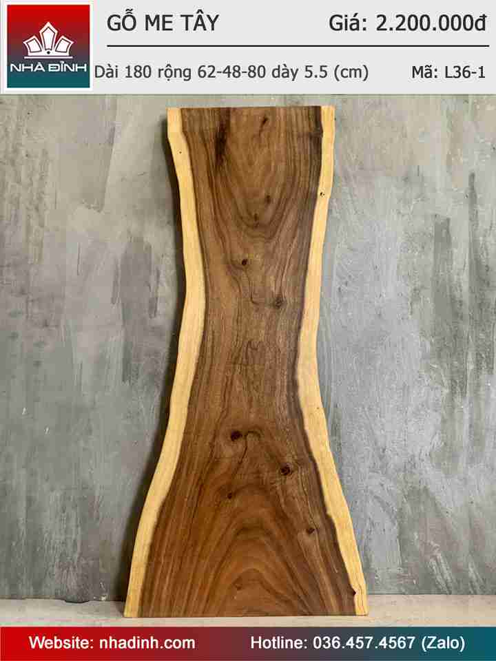 Mặt Bàn Gỗ Me Tây Nguyên Khối Dài 180 Rộng 62-48-80 Dày 5,5 (cm)