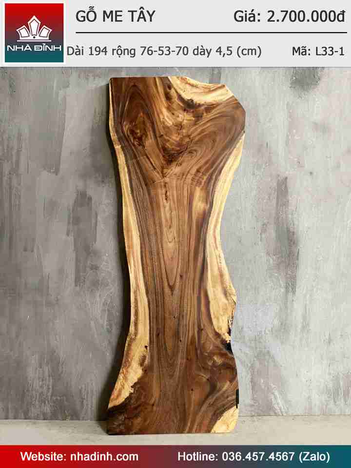 Mặt Bàn Gỗ Me Tây Nguyên Khối Dài 194 Rộng 76-53-70 Dày 4,5 (cm)