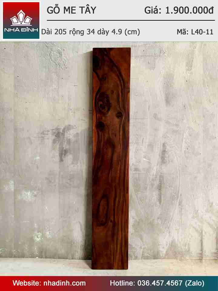 Mặt Bàn Gỗ Me Tây Nguyên Khối Dài 205 Rộng 34 Dày 4,9 (cm)