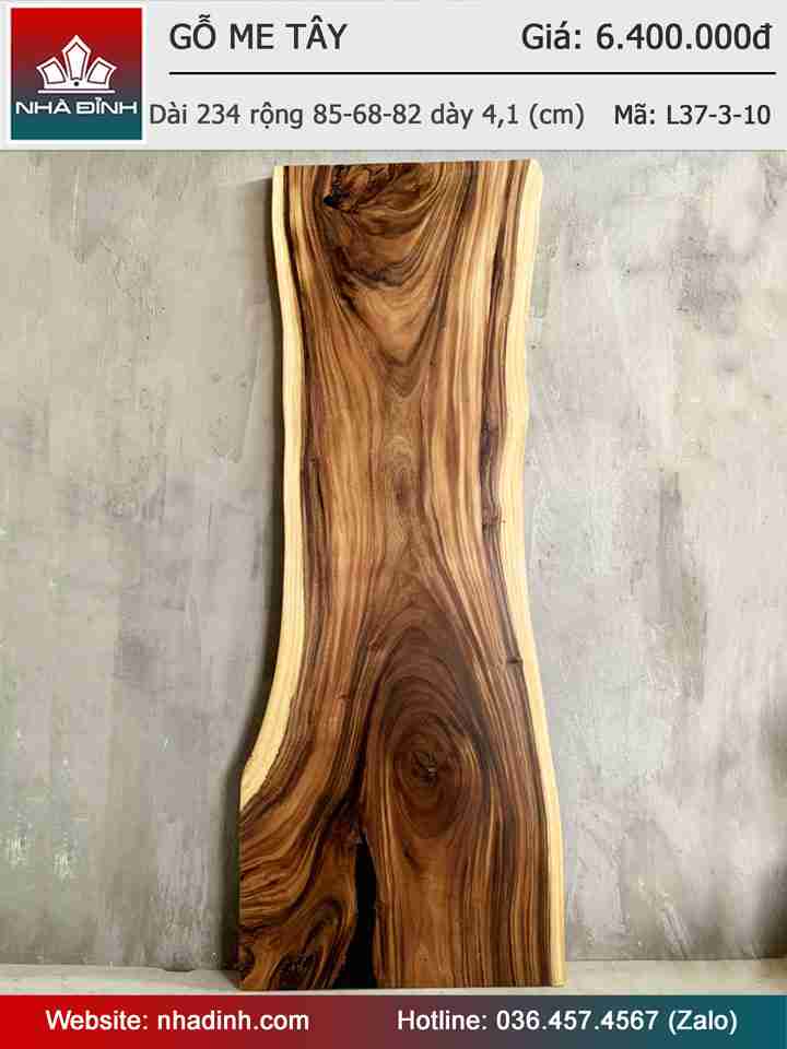 Mặt Bàn Gỗ Me Tây Nguyên Khối Dài 234 Rộng 85-68-82 Dày 4,1 (cm)