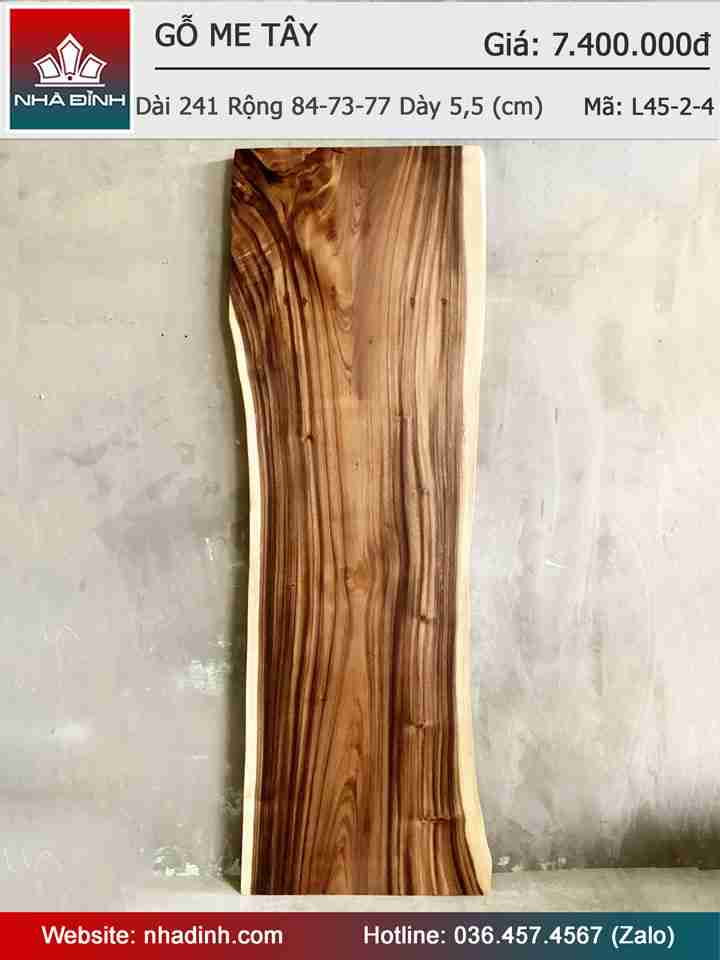 Mặt Bàn Gỗ Me Tây Nguyên Khối Dài 241 Rộng 84-73-77 Dày 5,5 (cm)