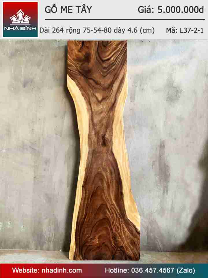 Mặt Bàn Gỗ Me Tây Nguyên Khối Dài 264 Rộng 75-54-80 Dày 4,6 (cm)