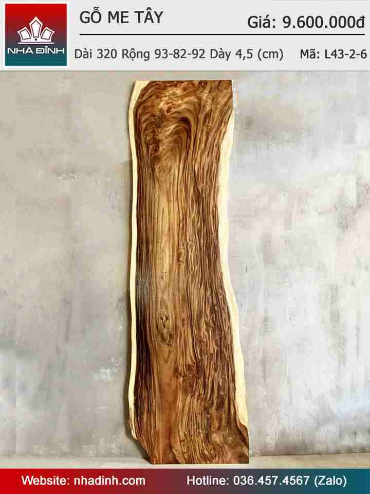 Mặt Bàn Gỗ Me Tây Nguyên Khối Dài 320 Rộng 93-82-92 Dày 4,5 (cm)