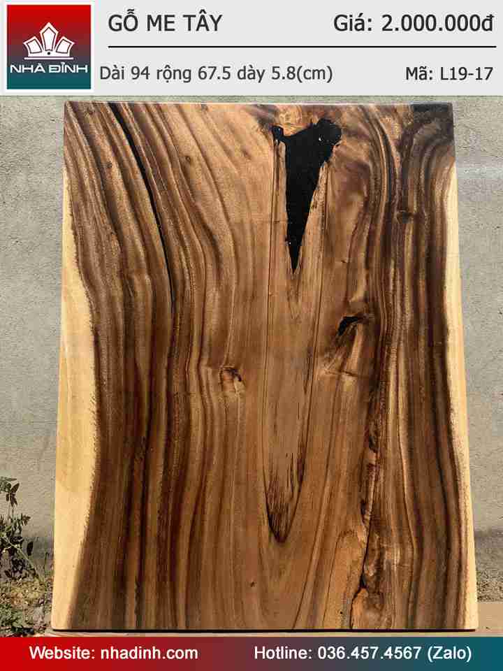 Mặt bàn gỗ Me Tây nguyên khối dài 94 rộng 67,5 dày 5,8 (cm)
