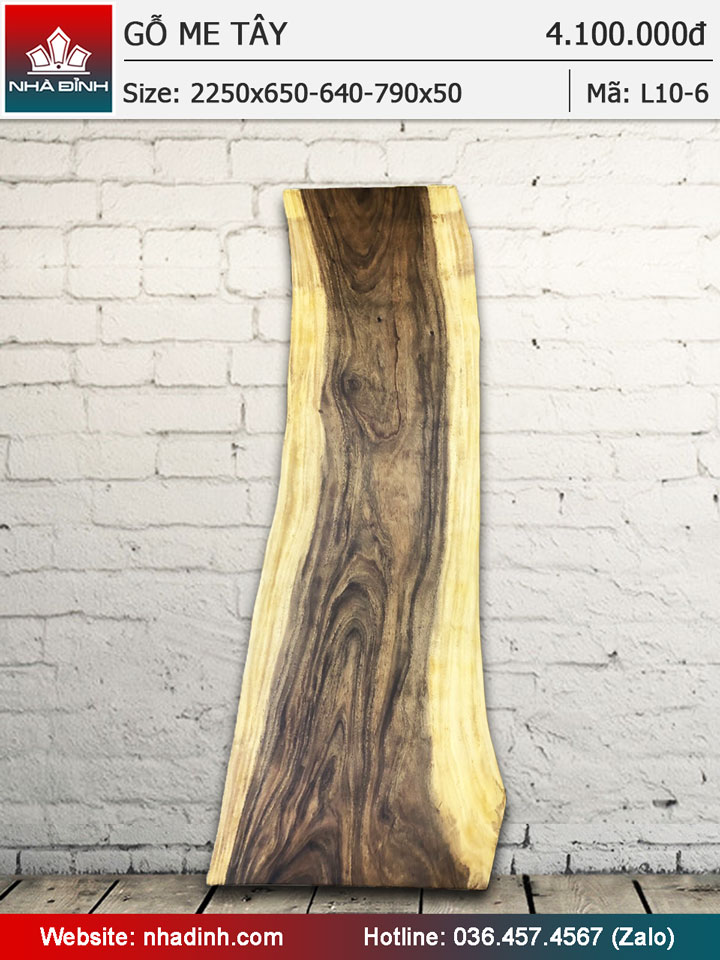 Mặt bàn gỗ Me Tây nguyên tấm dài 225 rộng 65-64-79 dày 5 (cm)