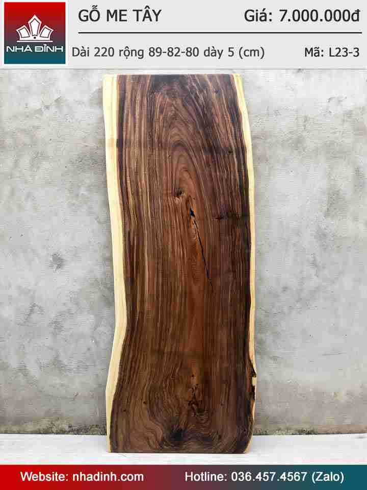 Mặt Bàn Gỗ Me Tây Nguyên Tấm Dài 220 Rộng 89 - 82 - 80 Dày 5 (cm)