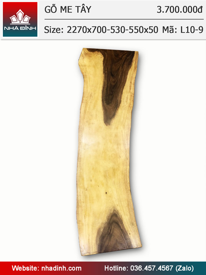 Mặt bàn gỗ Me Tây nguyên tấm dài 2270 rộng 700-530-550 dày 50 (mm)