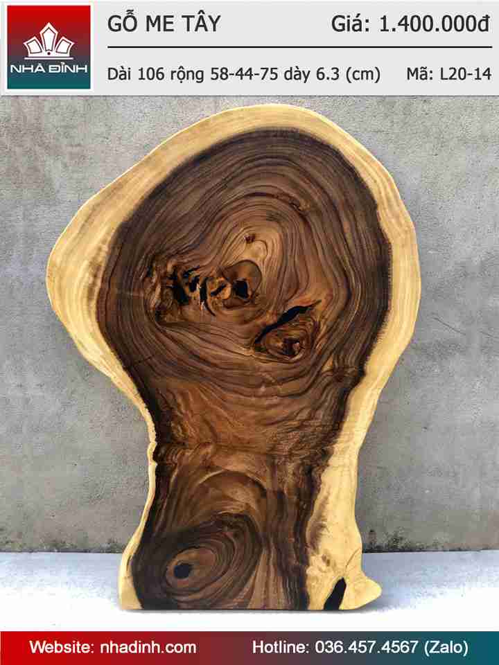 Mặt bàn Sofa, bàn Trà gỗ Me Tây nguyên khối Dài 106 rộng 58 - 44 - 75 dày 6.3 (cm)
