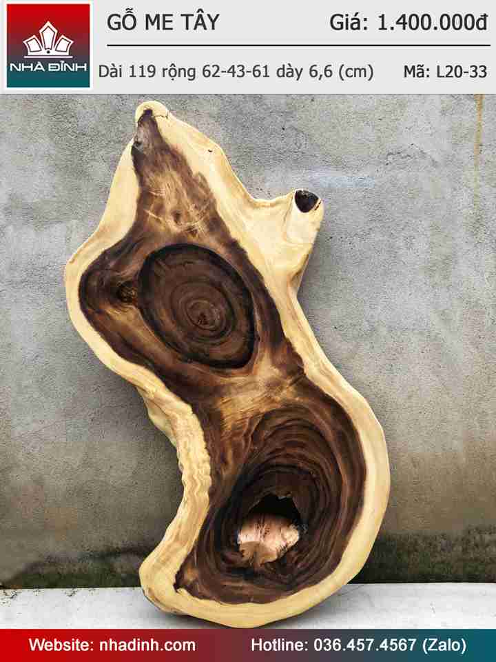 Mặt Bàn Sofa Gỗ Me Tây Nguyên Khối Dài 119 Rộng 62-43-61 Dày 6.6 (cm)