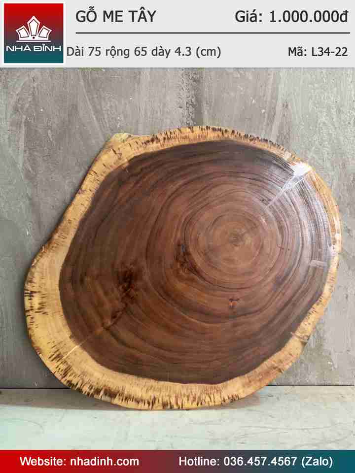Mặt Bàn Sofa Gỗ Me Tây Nguyên Khối Dài 75 Rộng 65 Dày 4.3 (cm)