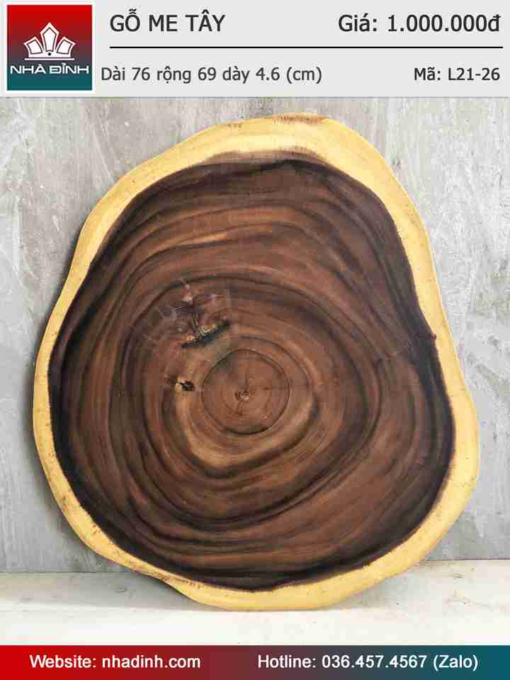 Mặt Bàn Sofa Gỗ Me Tây Nguyên Khối Dài 76 Rộng 69 Dày 4,6 (cm)
