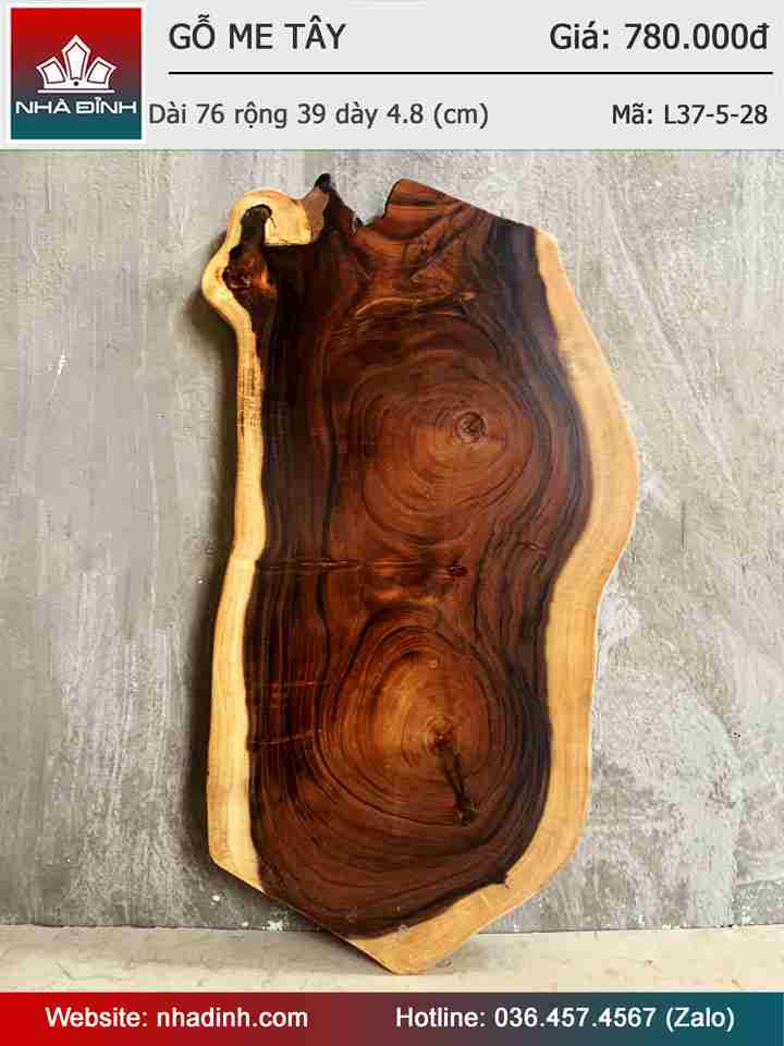 Mặt Bàn Thớt Gỗ Me Tây Nguyên Khối Dài 76 Rộng 39 Dày 4,8 (cm)