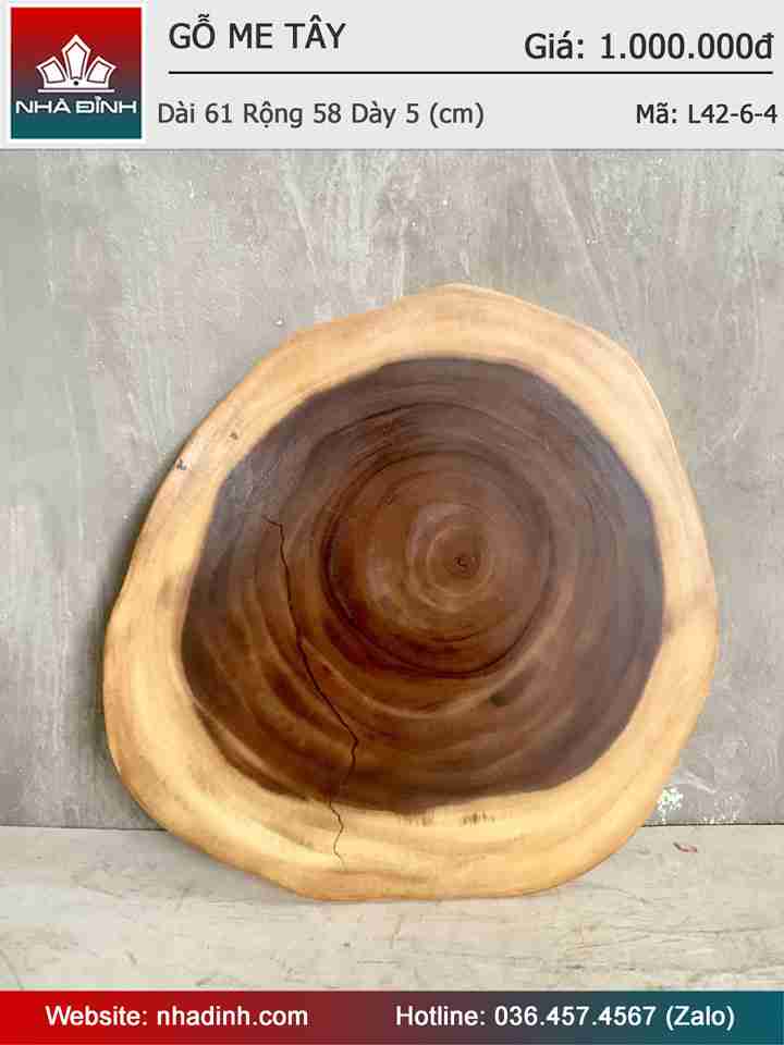 Mặt Bàn Trà Gỗ Me Tây Nguyên Khối Dài 61 Rộng 58 Dày 5 (cm)