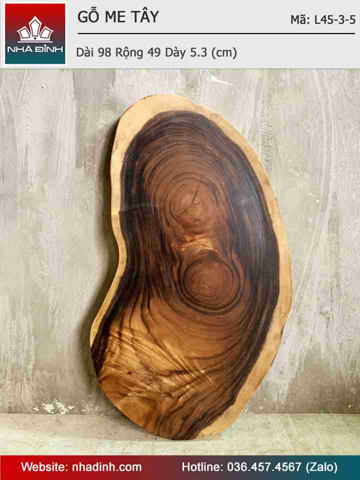 Mặt Bàn Trà Gỗ Me Tây Nguyên Khối Dài 98 Rộng 49 Dày 5,3 (cm)