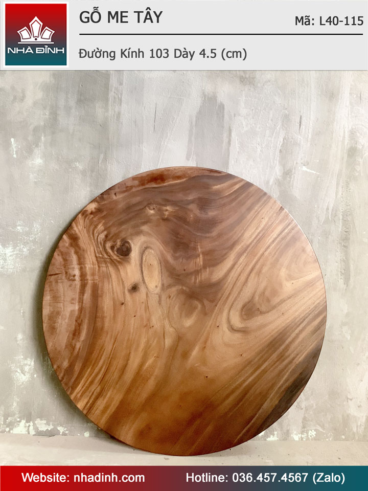 Mặt Bàn Tròn Gỗ Me Tây Nguyên Khối Đường Kính 103 Dày 4,5 (cm)