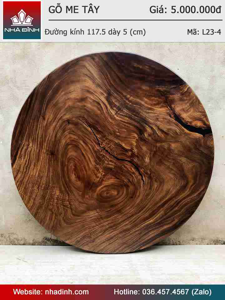 Mặt Bàn Tròn Gỗ Me Tây Nguyên Khối Đường Kính 117,5 Dày 5 (cm)
