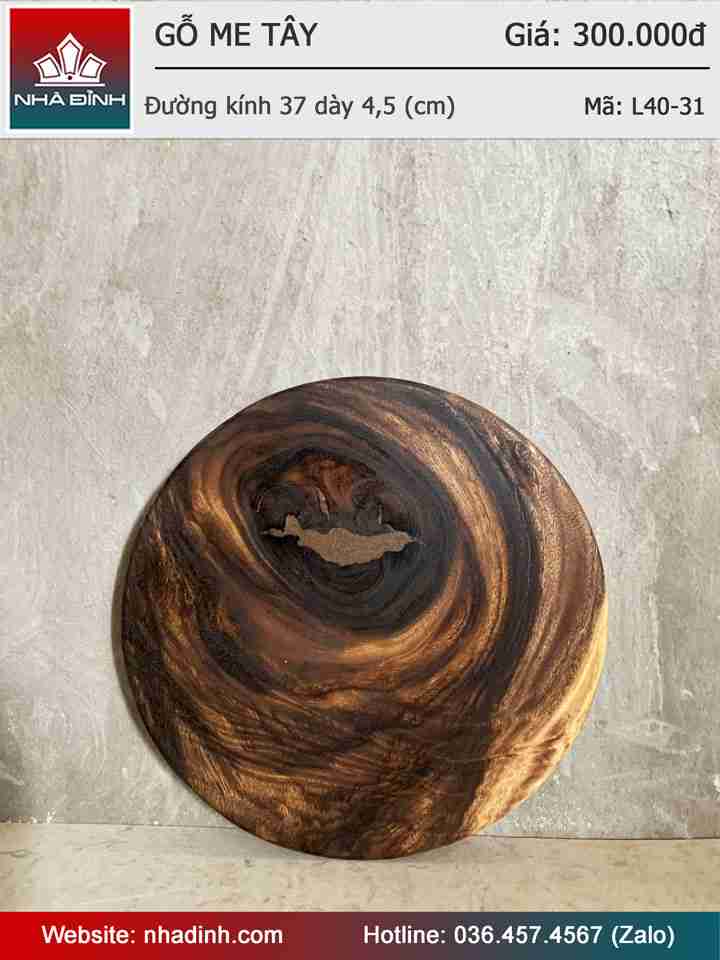 Mặt Bàn Tròn Gỗ Me Tây Nguyên Khối Đường Kính 37 Dày 4,5 (cm)