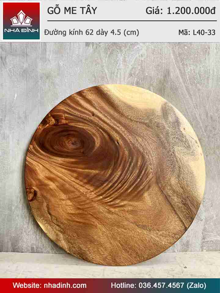 Mặt Bàn Tròn Gỗ Me Tây Nguyên Khối Đường Kính 62 Dày 4,5 (cm)