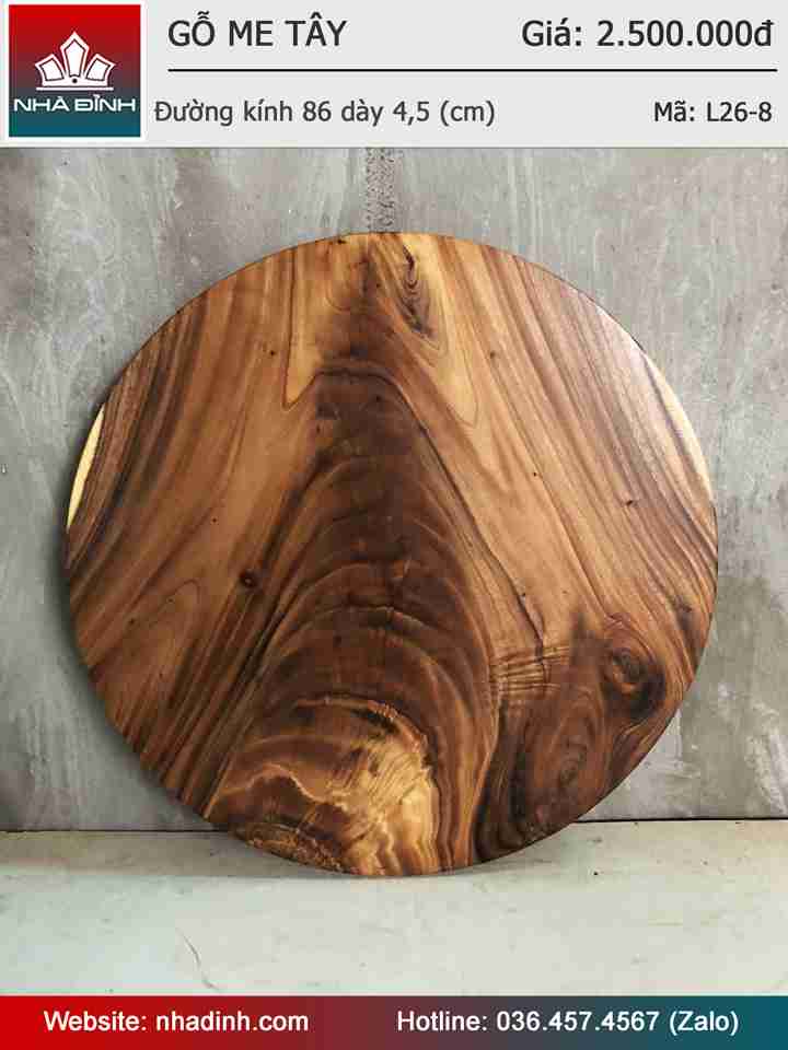 Mặt Bàn Tròn Gỗ Me Tây Nguyên Khối Đường Kính 86 Dày 4,5 (cm)