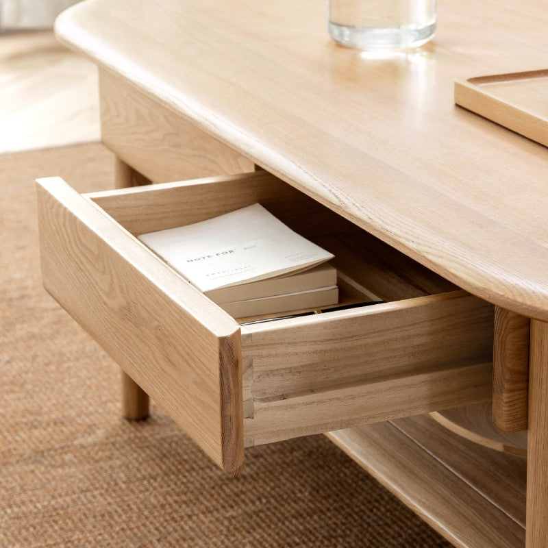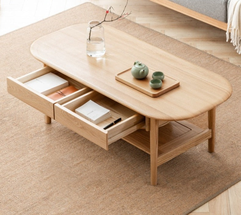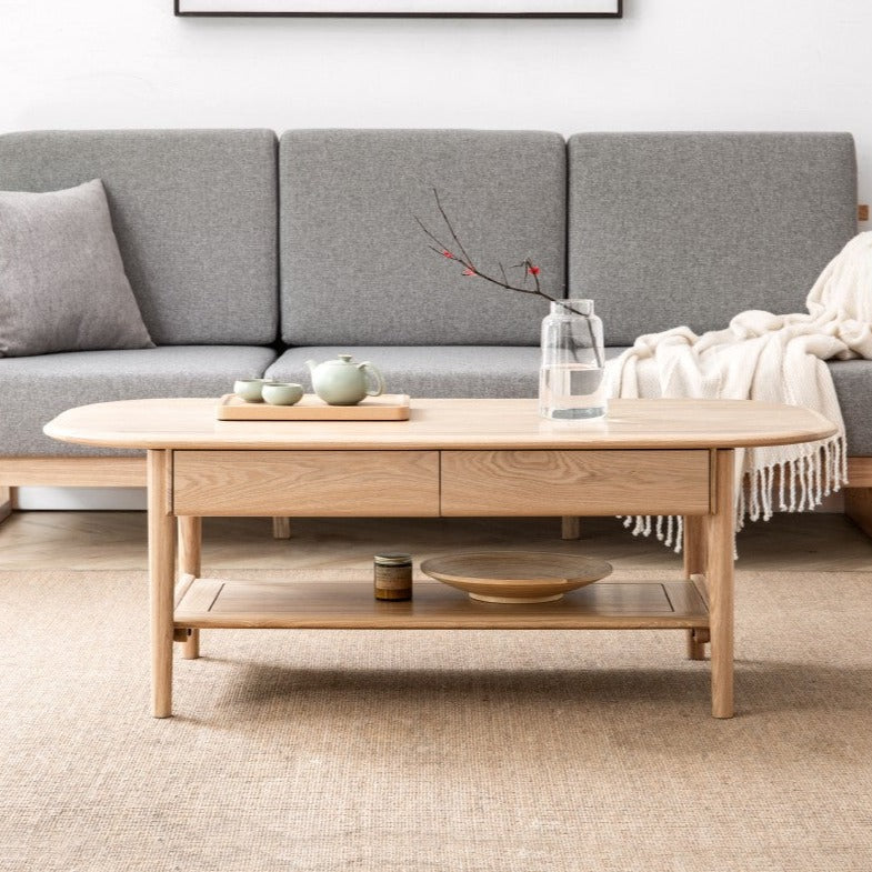 Bàn Coffee Oval Gỗ Sồi