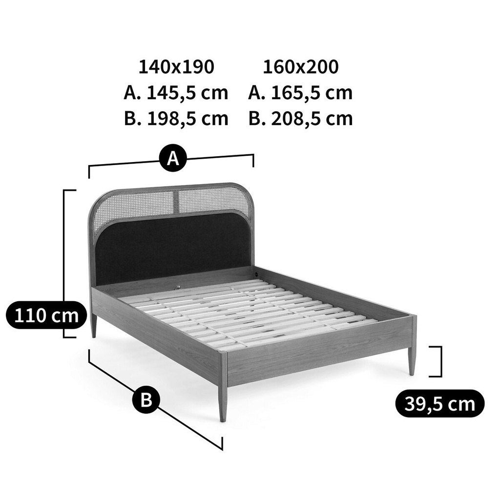 Giường Gỗ Sồi Kết Hợp Mây Và Nệm Dài 200 Rộng 160 Cao 110 (cm)