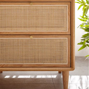 Chất liệu: Mây + Gỗ Sồi (Oak)_35% + Gỗ Cao Su Veneer Sồi_65%