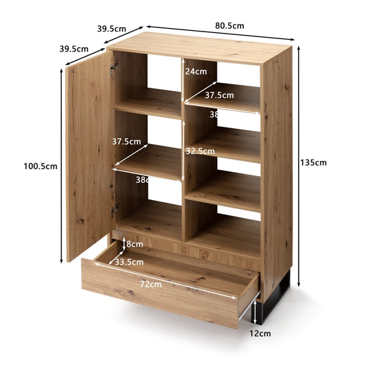 Tủ Đựng Chén Bát Gỗ Sồi Cao 135 Ngang 80,5 Rộng 39,5 (cm)