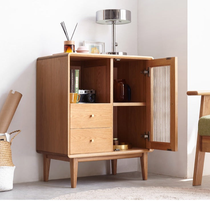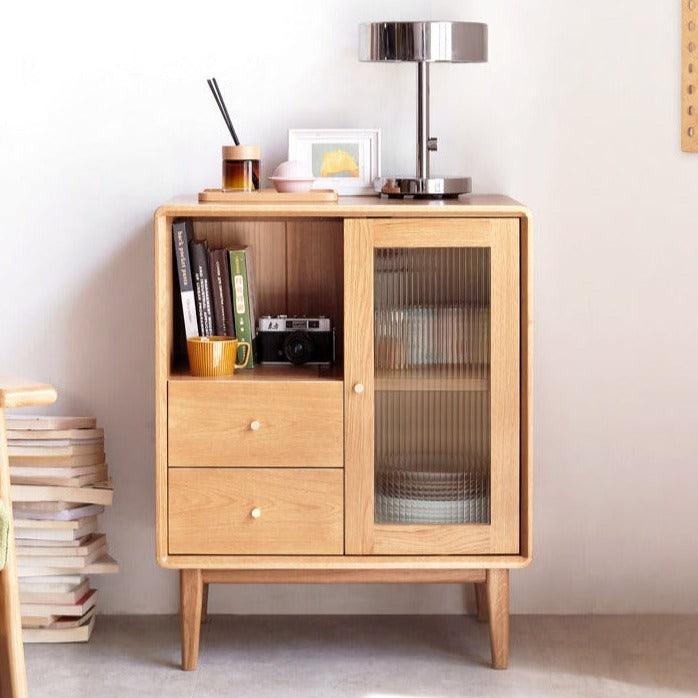 Tủ Trang Trí Gỗ Sồi Kết Hợp Kính Rộng 65 Sâu 40 Cao 80 (сm)