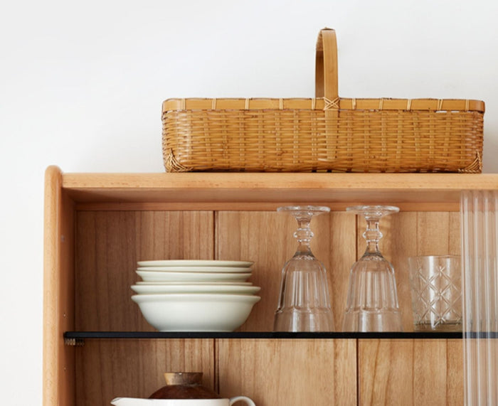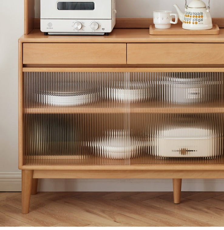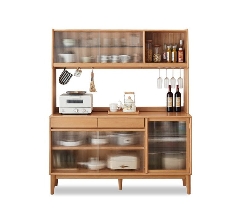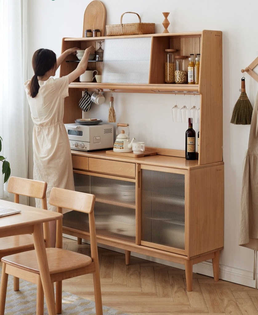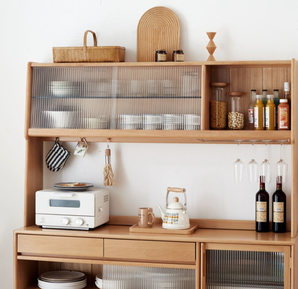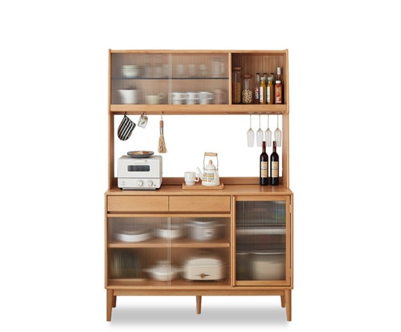 Tủ Đồ Khô Phòng Bếp Gỗ Sồi Kết Hợp Kính