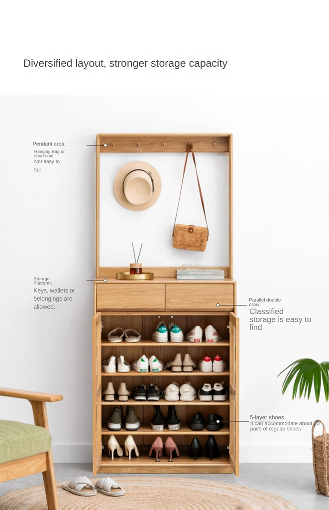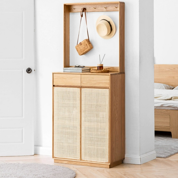 Tủ Giày Kết Hợp Lưới Mây Gỗ Sồi