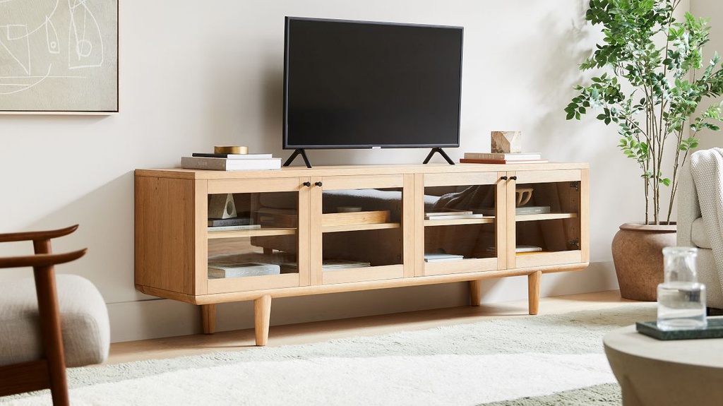 Tủ Tivi Gỗ Sồi Cánh Kính Dài 203 Sâu 45 Cao 66 (cm)