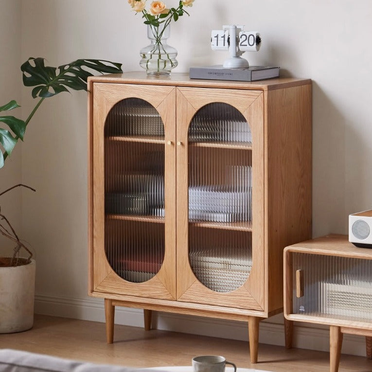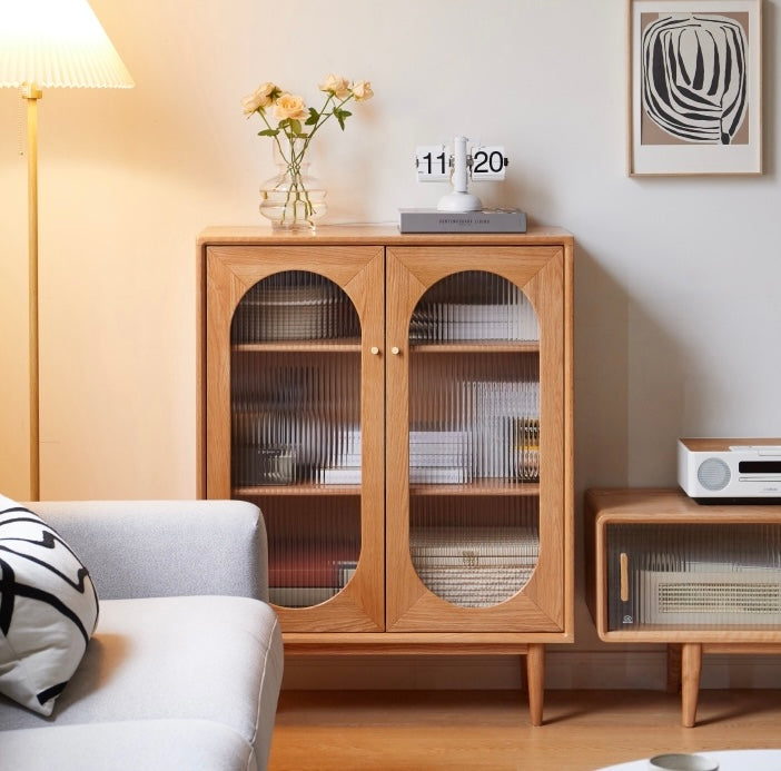 Tủ Trang Trí Gỗ Sồi Kết Hợp Kính